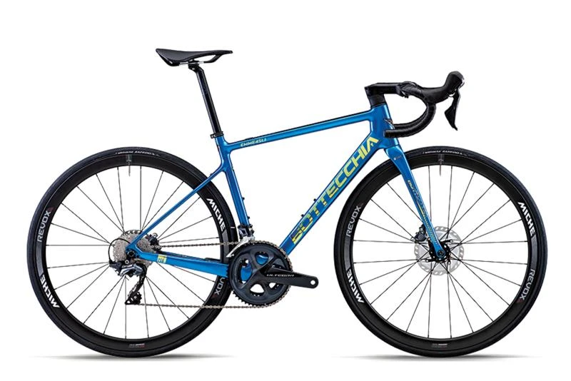 Designed for the world of racing, EMME 4 SLI is the road bike par excellence for road racing. Perfect for long distances, it gives its best uphill thanks to the super light frame and its increased stiffness, but also downhill, where it makes the difference thanks to its aerodynamics with internal wiring and extraordinary driveability. Equipped to the professional team Androni Giocattoli Sidermec, it has been the Italian Champion bike several times.