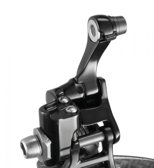 The new Super Record™ 12X2 Speed mechanical front derailleur introduces many new techniques, starting with the leverage systems designed to speed up derailings. Less effort is needed to shift owing to the split front connecting rod, which prevents contact with the travel limit screw. Whilst the shape of the inner cage plate is engineered to guarantee maximum readiness for upshifting, the external monolith body in carbon fibre has been shaped to enhance the efficiency of the chain movement when going uphill and the readiness and fluidity in descent.