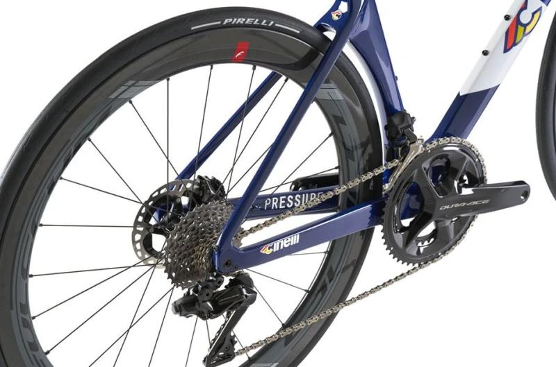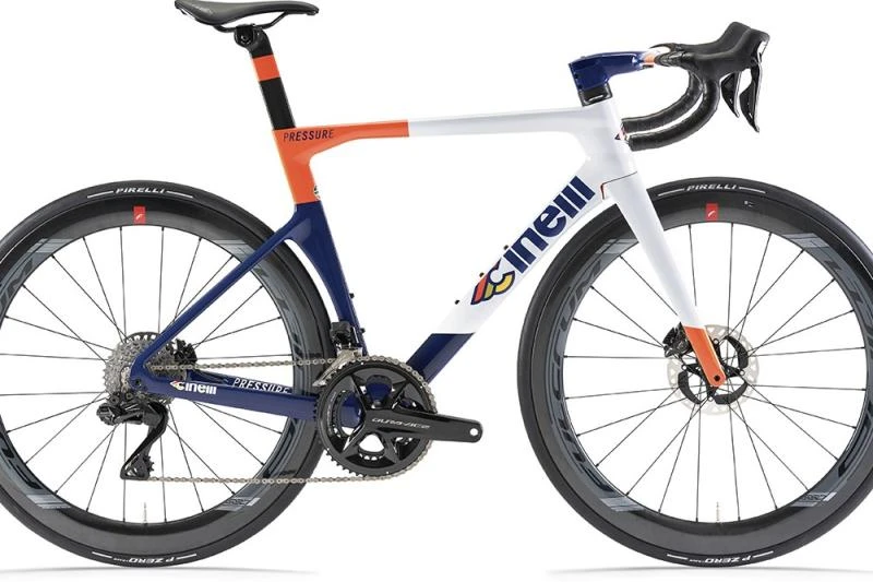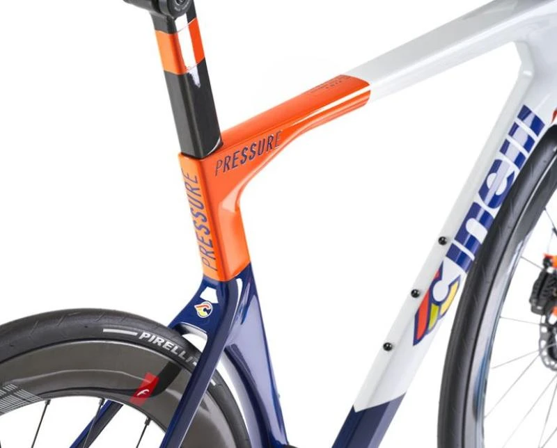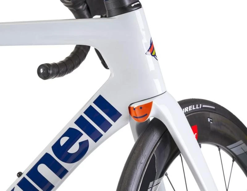 The new born Cinelli aerodynamic racing frame integrates anything possible: the special aero seat tube, the custom colour FSA Vision Metron 5D ACR fully integrated aero handlebar, with integrated headset, cockpit and fork, for the cleanest cable routing solution and fastest racing geometry ever.