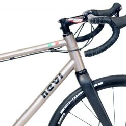 3AL-2,5V titanium frame, new creation NEVI, more stiffness and better travelling. 1″1/2 headtube.