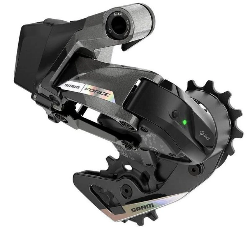 Road races. Cyclocross. Gravel. Pleasure outings. This derailleur really does it all and, what’s more, it does it well. The single-length cage fits all cassette sizes from 10-28 to 10-36, in both 1x and 2x configurations. Shifts are quick and precise and Orbit technology with hydraulic damping system controls chain movement on hits caused by roots or potholes. Plus, the graphics are strategically placed to remind you that you own the coolest wireless transmission ever.