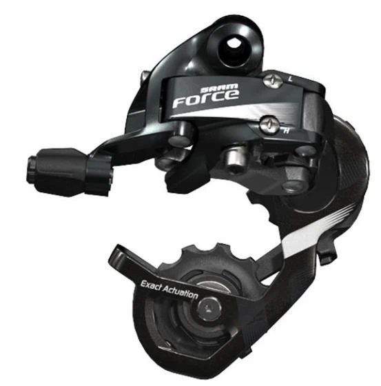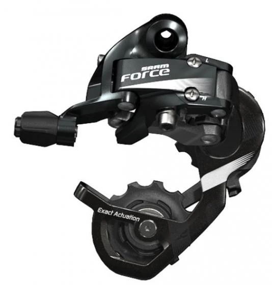 The SRAM Force 22 rear derailleur, which incorporates all the technologies needed to obtain fast and quiet gear changes, also incorporates our EXACT ACTUATION™ technology to ensure precise and efficient gear changes over the entire range of further extended gears.