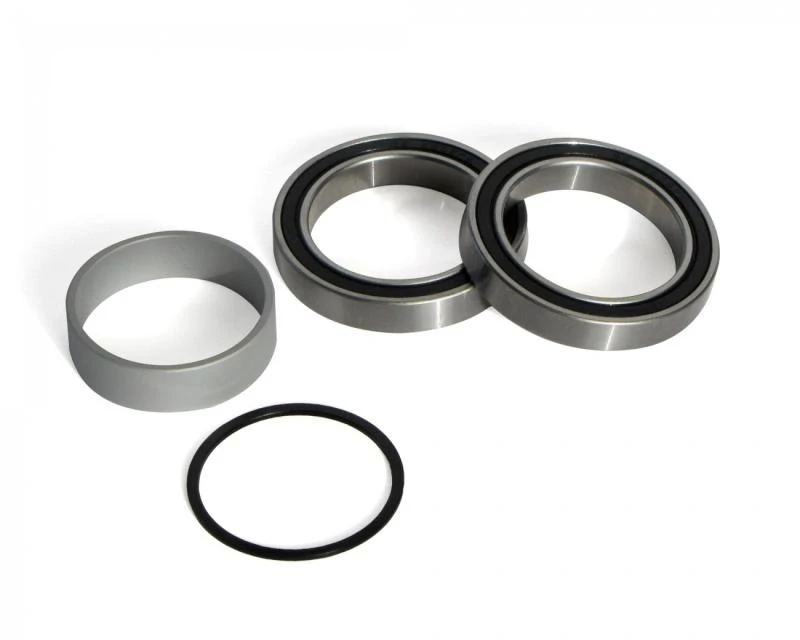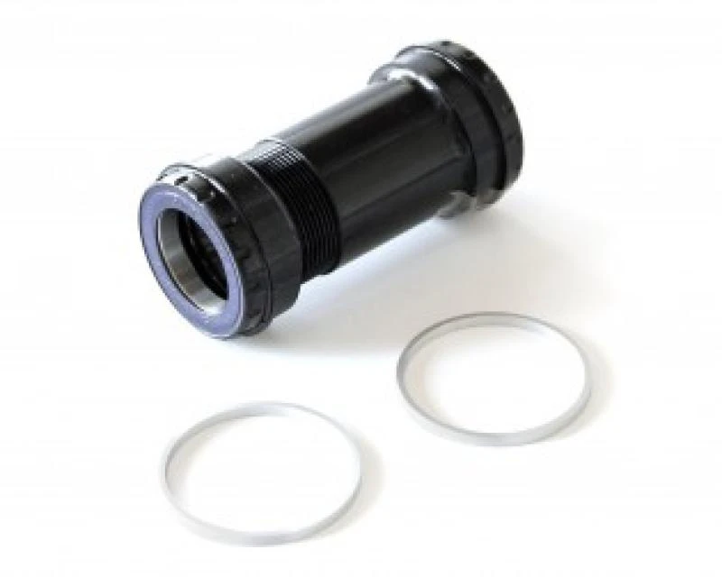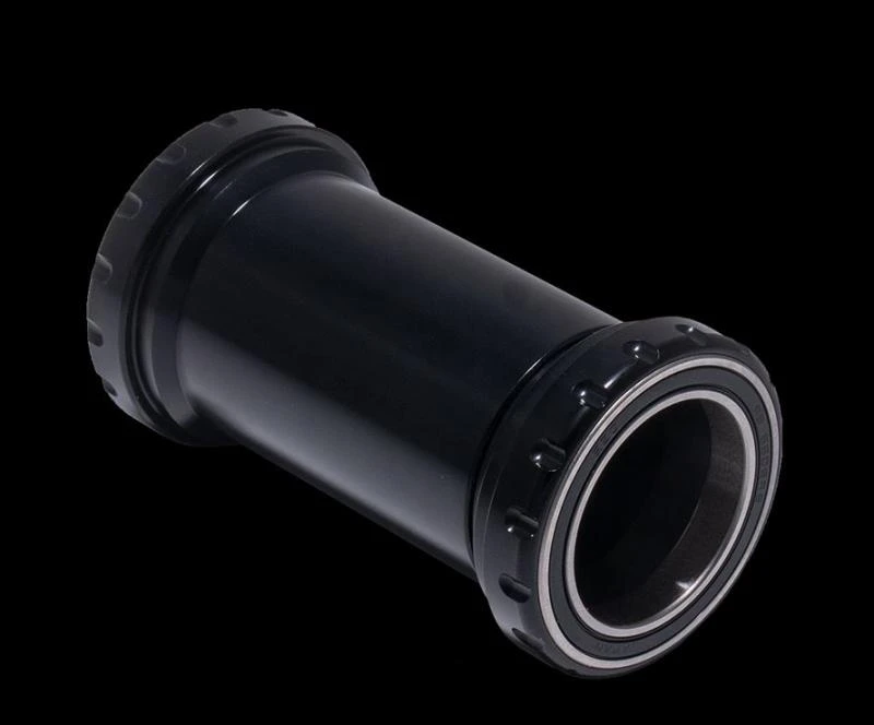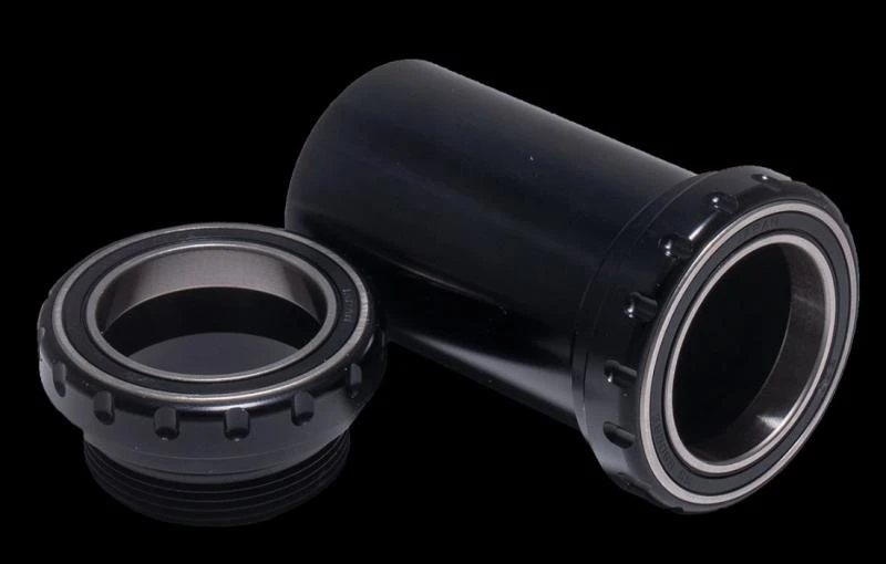 These bearing cups are suited for installation of the THM Clavicula on frames with bottom bracket housings to BB30 standard applicable to axles with 30 mm diameter. The bottom bracket housing is 68 mm wide and its inner diameter is 42 mm. The snap rings wich for the BB30 standard are used as limit stop when pressing in the bearings, must not be installed. The relatively small bearing clearance of 68 mm could lead to considerable axle deformations. Our solution with bearings at the outside involves a reduced load on the axle which can be seen from the higher rigidity. Another advantage is the facility of using the same crank for frames to BB30 standard and those with BSA or Italian thread. The increase in weight of the complete system is neglegible.