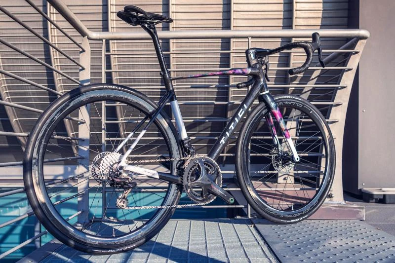 The customisation offered by TITICI not only concerns the frame geometries, but also the colouring and graphics – including those of the TITICI handlebar and seatpost. VENTO is designed solely for systems with electro-mechanical brakes and groupset.